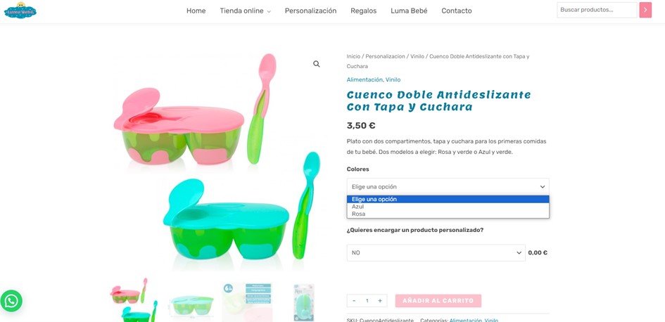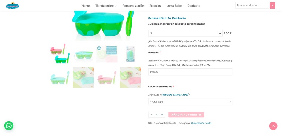 Muchos de nuestros productos permiten su personalización. Si es así, en la ficha del producto aparecerá el apartado