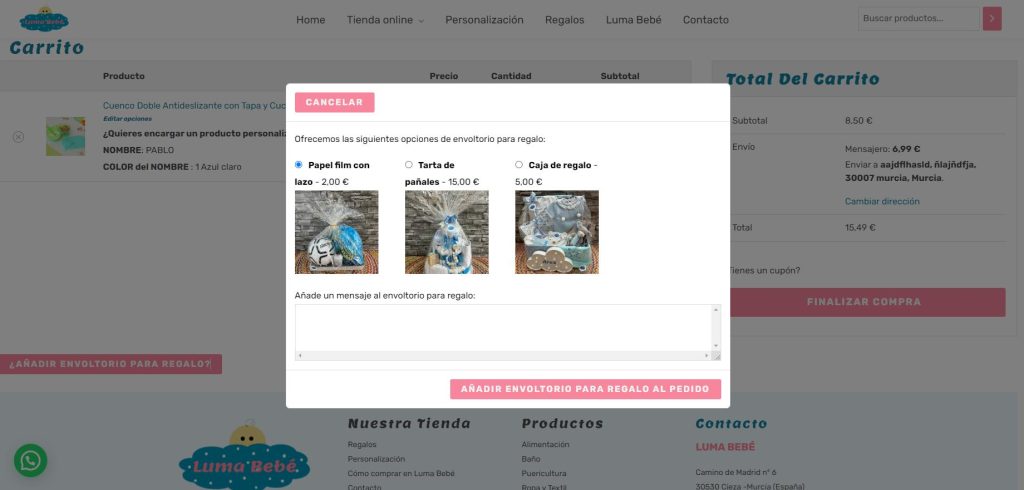 Si quieres que te lo preparemos como regalo, pincha en la opción de ¿AÑADIR ENVOLTORIO PARA REGALO?