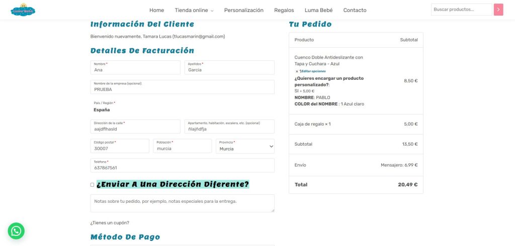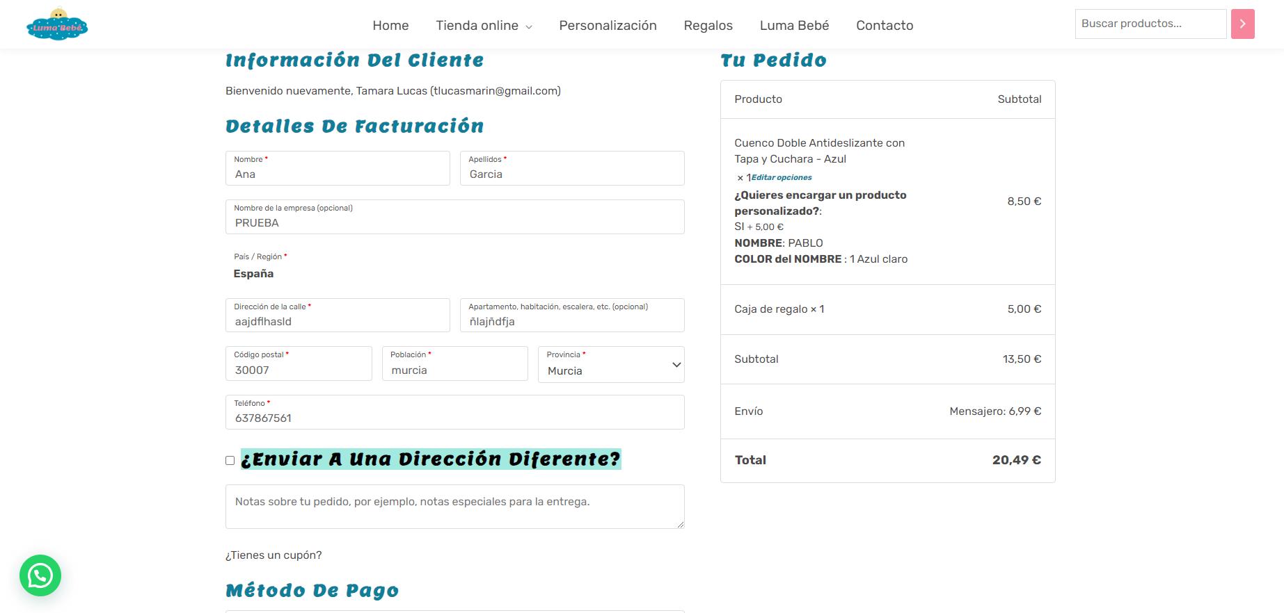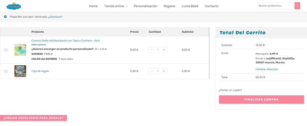 Ve al carrito de compra y comprueba que el producto y los datos de personalización son correctos.